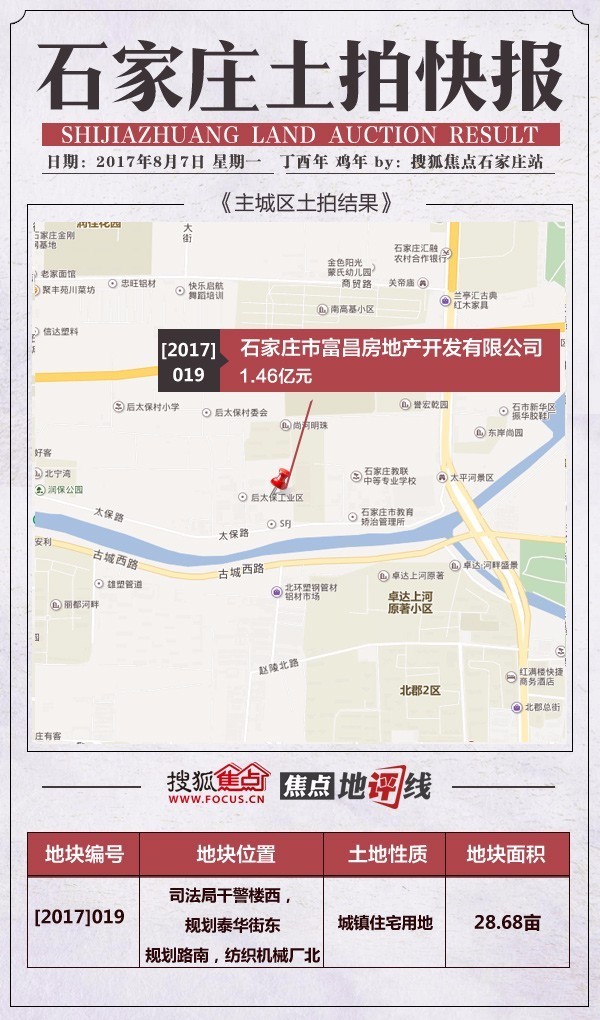 [2017]019号地位于楼西、规划泰华街东、规划南、纺织机械厂北。贾村村东,融创中国分公司正式取裕华区签约。