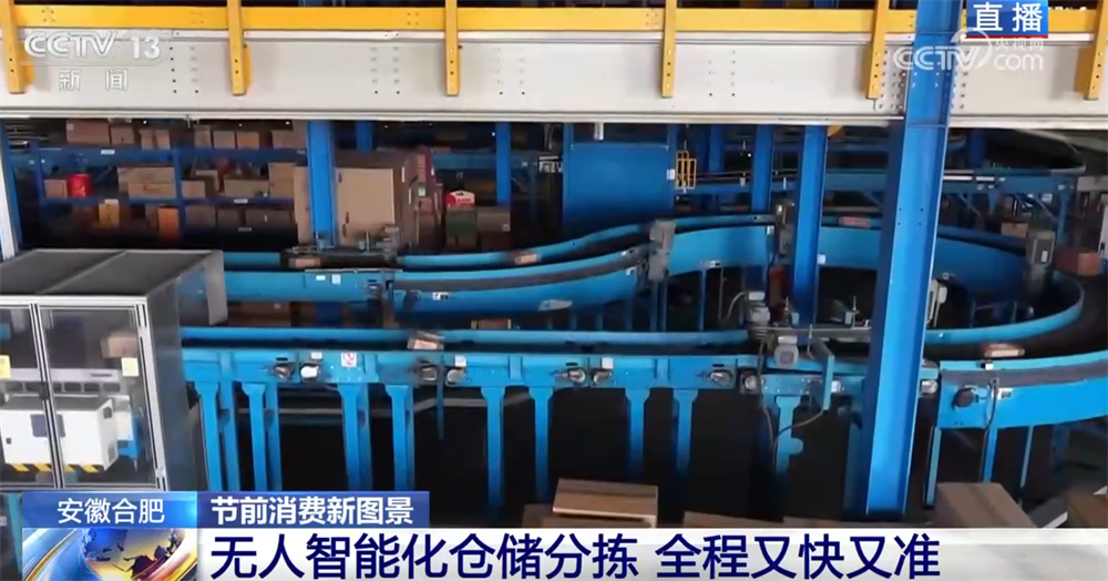 先辈来同一入仓,跟着节前市场的火爆,从动化和智能化正在这里的使用能够节流约70%的人力。这里还搞起了曲播,货色正正在进行分拣!