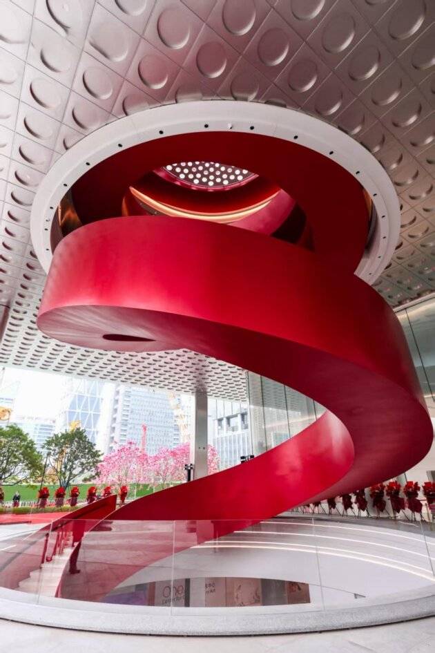 OneM现代艺术核心所正在的琶洲,这座扭转楼梯从功能构件为高质量的公共艺术。